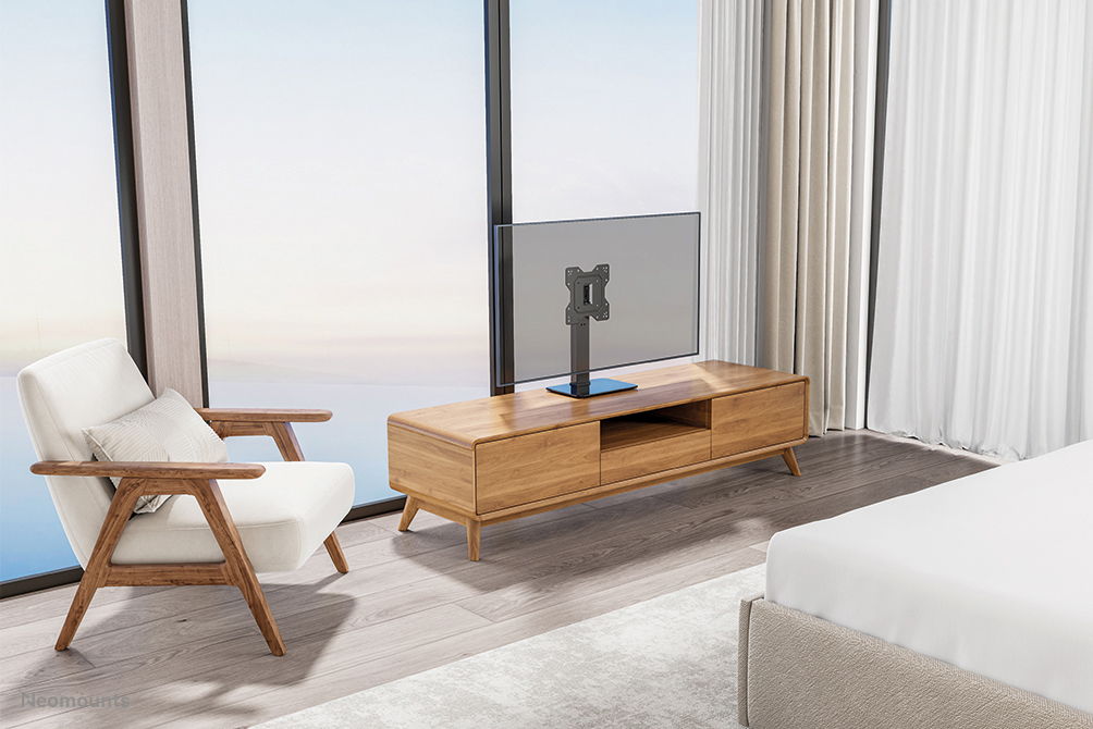 The Neomounts DS45-430BL12 is a TV desk stand for screens up to 43" with a weight capacity of 40 kg. The TV stand features a practical swivel option (70°) to easily position the TV in the optimum viewing angle. Additionally, the TV desk stand can be adjusted in height in one of the three pre-set positions.