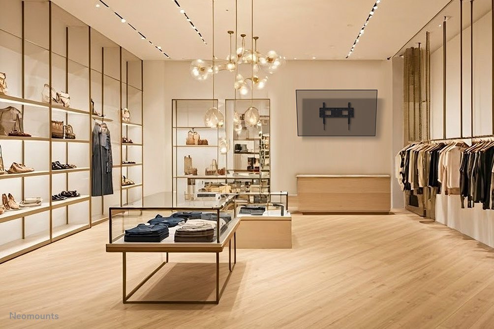 The LEVEL-750 wall mount has a profile of 9,3 cm and is suitable for screens that meet VESA hole pattern 100x100 to 600x400 mm. Its quickly connectable wall plate allows for multiple screen mounting. Additionally, the wall plate is designed with specific cut-outs for wall sockets and securing devices and cables. It features various perforated holes for easy tie-wrap cable fixing and provides space for cable storage, ensuring a clean and tidy finishing.