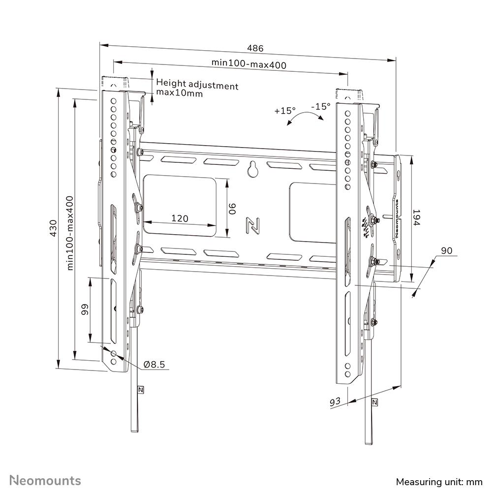 The Neomounts WL35-750BL14 LEVEL is the ultimate tiltable solution for securely mounting an interactive or heavy weight display up to 75" with a maximum capacity of 100 kg. The toolless tilt adjustment (+15°/-15°) allows you to create the optimum viewing angle. This heavy-duty wall mount features a sturdy high profile wall plate and is engineered for stability and precision, ensuring your screen is securely mounted even on uneven surfaces. The mount features individual adjustable brackets (10 mm) for securely adjusting the display height or levelling it.