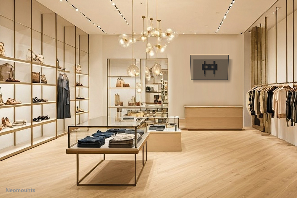 The LEVEL-750 wall mount has a profile of 9,3 cm and is suitable for screens that meet VESA hole pattern 100x100 to 400x400 mm. Its quickly connectable wall plate allows for multiple screen mounting. Additionally, the wall plate is designed with specific cut-outs for wall sockets and securing devices and cables. It features various perforated holes for easy tie-wrap cable fixing and provides space for cable storage, ensuring a clean and tidy finishing.