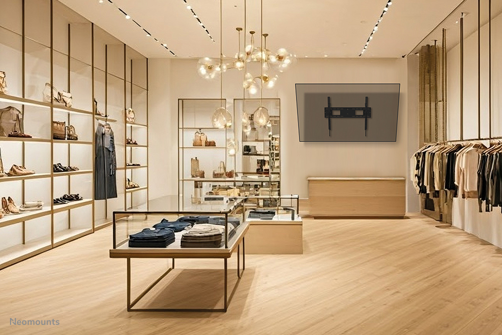 The LEVEL-750 wall mount has a profile of 9,3 cm and is suitable for screens that meet VESA hole pattern 100x100 to 800x600 mm. Its quickly connectable wall plate allows for multiple screen mounting. Additionally, the wall plate is designed with specific cut-outs for wall sockets and securing devices and cables. It features various perforated holes for easy tie-wrap cable fixing and provides space for cable storage, ensuring a clean and tidy finishing.