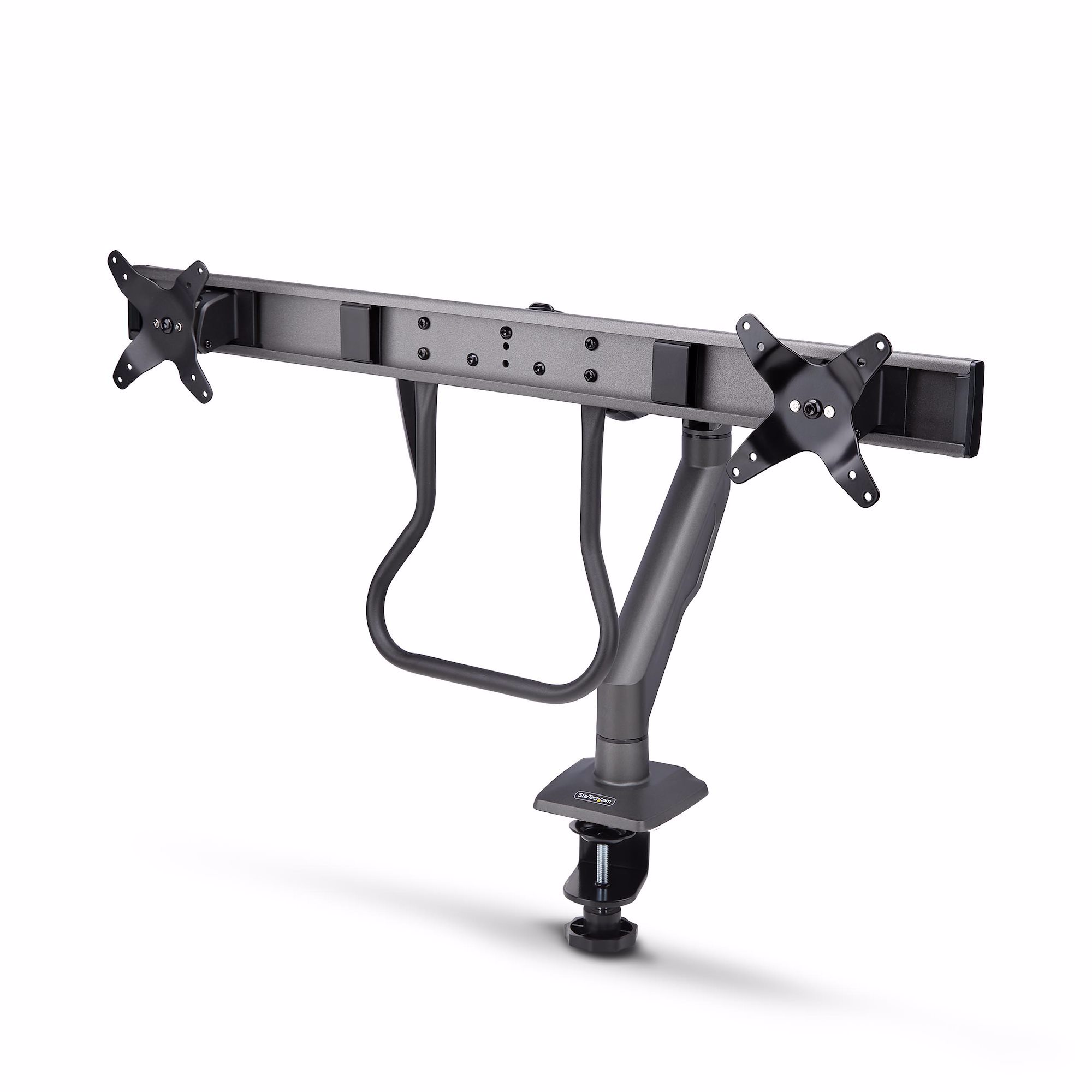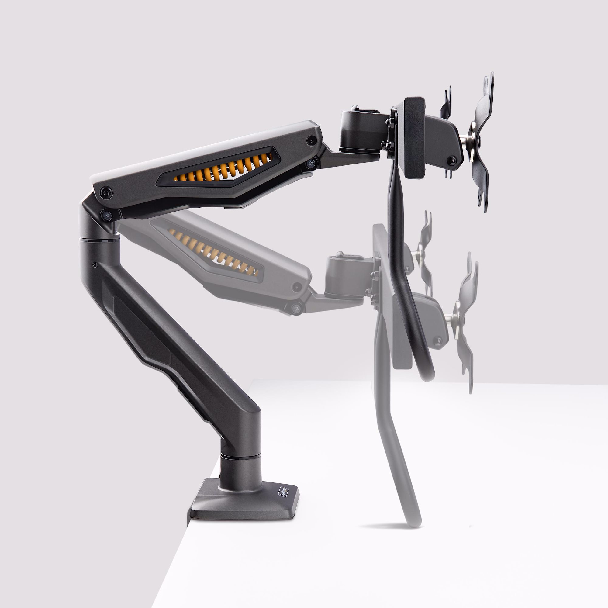 Dual monitor desk mount with support for up to 27" monitors with height adjustable spring arm