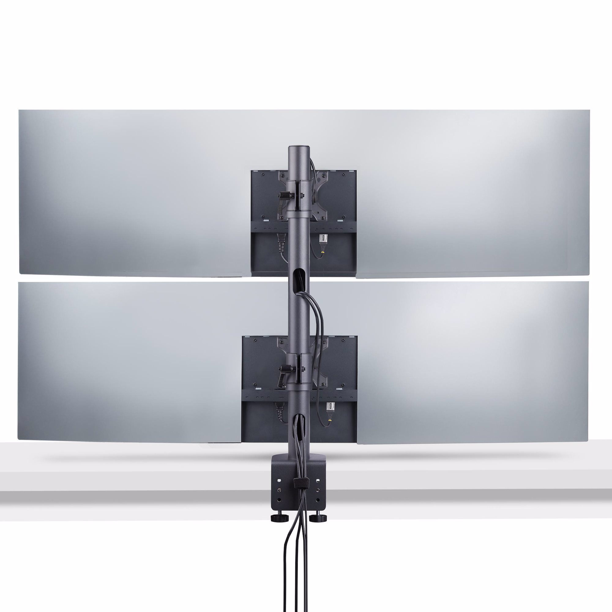 With a total weight capacity of 35.3lb (16kg) per VESA mount, the vertically stacked mount provides a secure and stable solution for mounting heavy monitors whether they are standard (4:3), widescreen (16:9), and ultrawide (32:9).