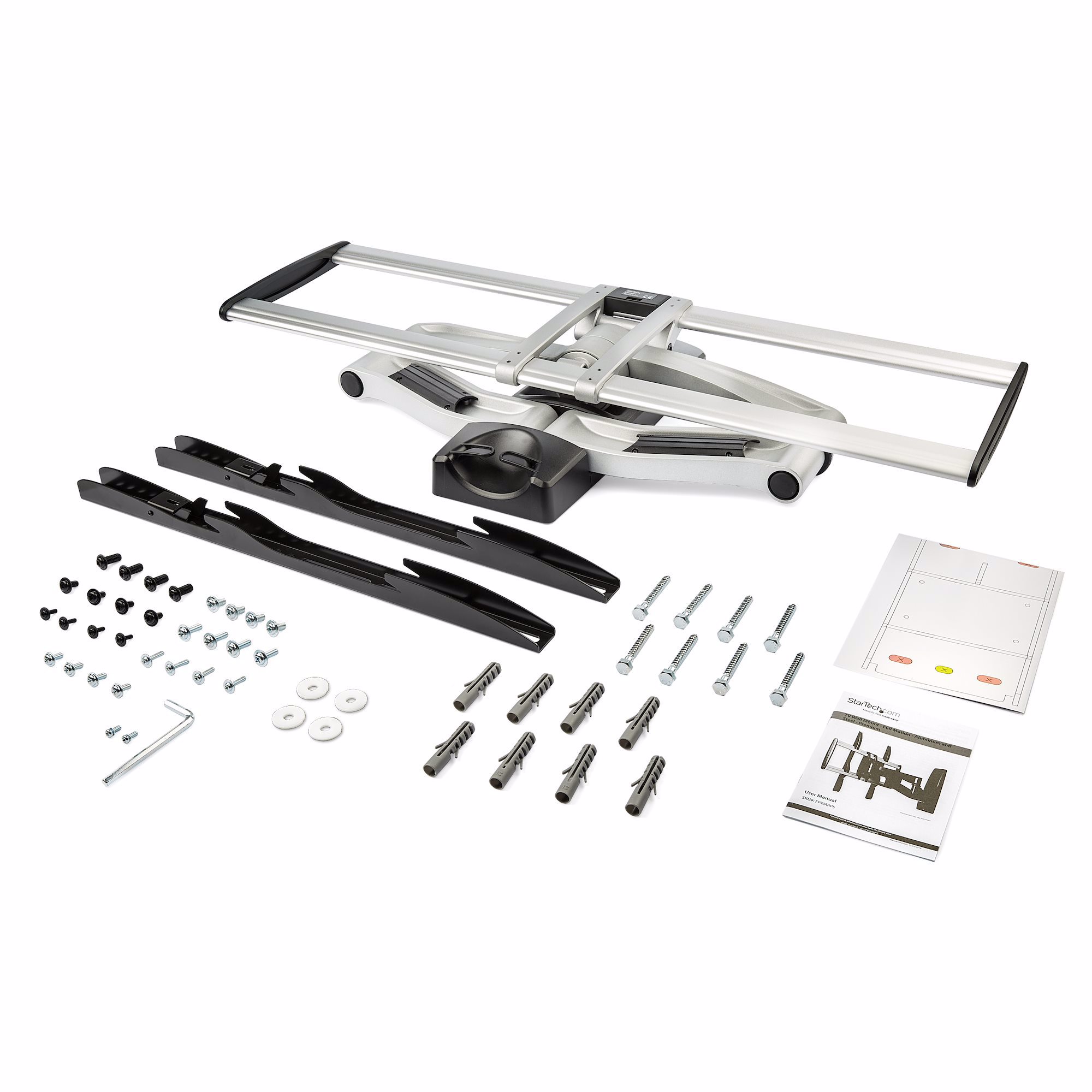 Once it's installed, the flat-screen TV wall mount is simple to adjust without using tools. You can extend the arms with ease to position your TV anywhere from 4.1" to 21.6" (105 to 550 mm) away from the wall. The TV mount swivels +/-60 degrees and tilts +/-15 degrees for optimum viewing.