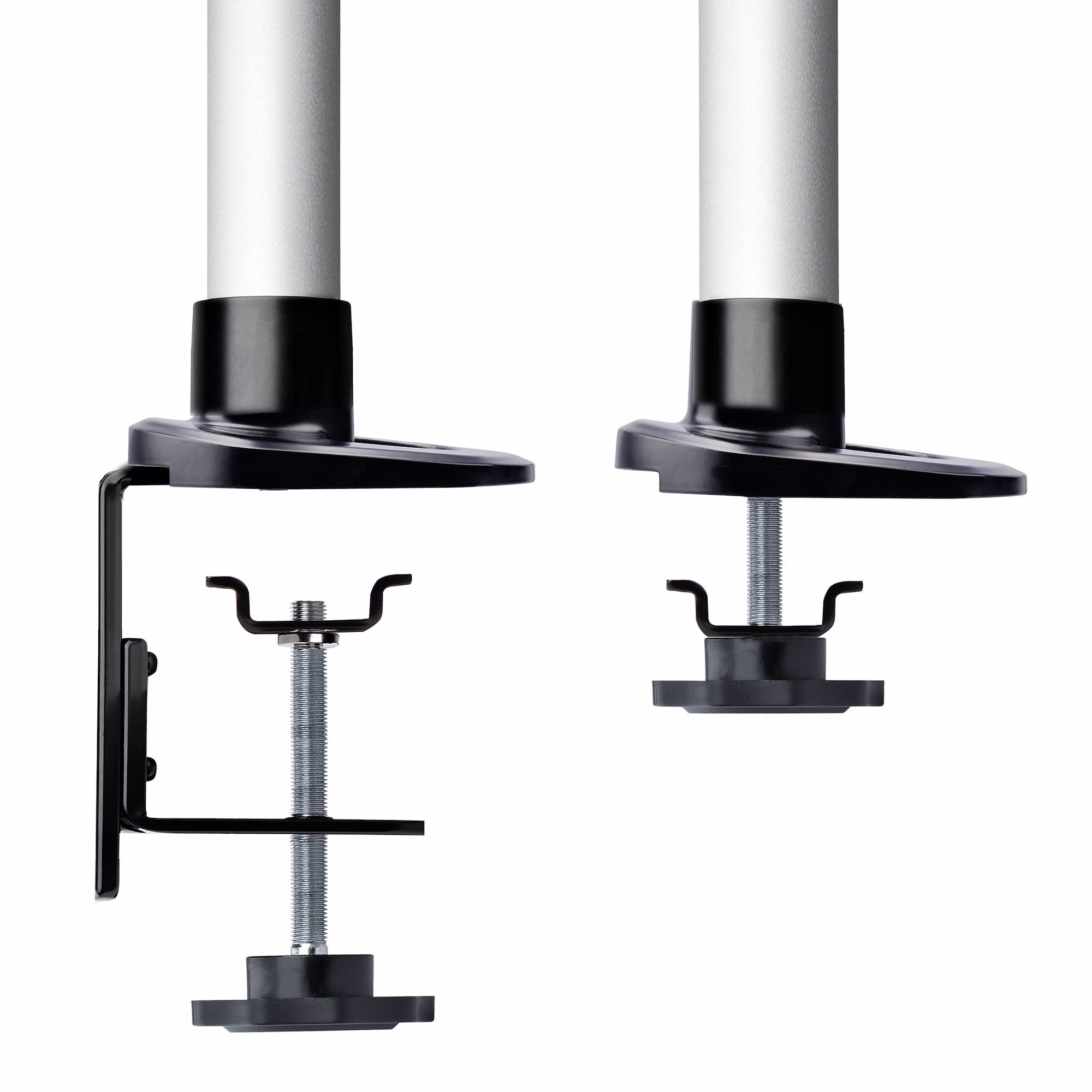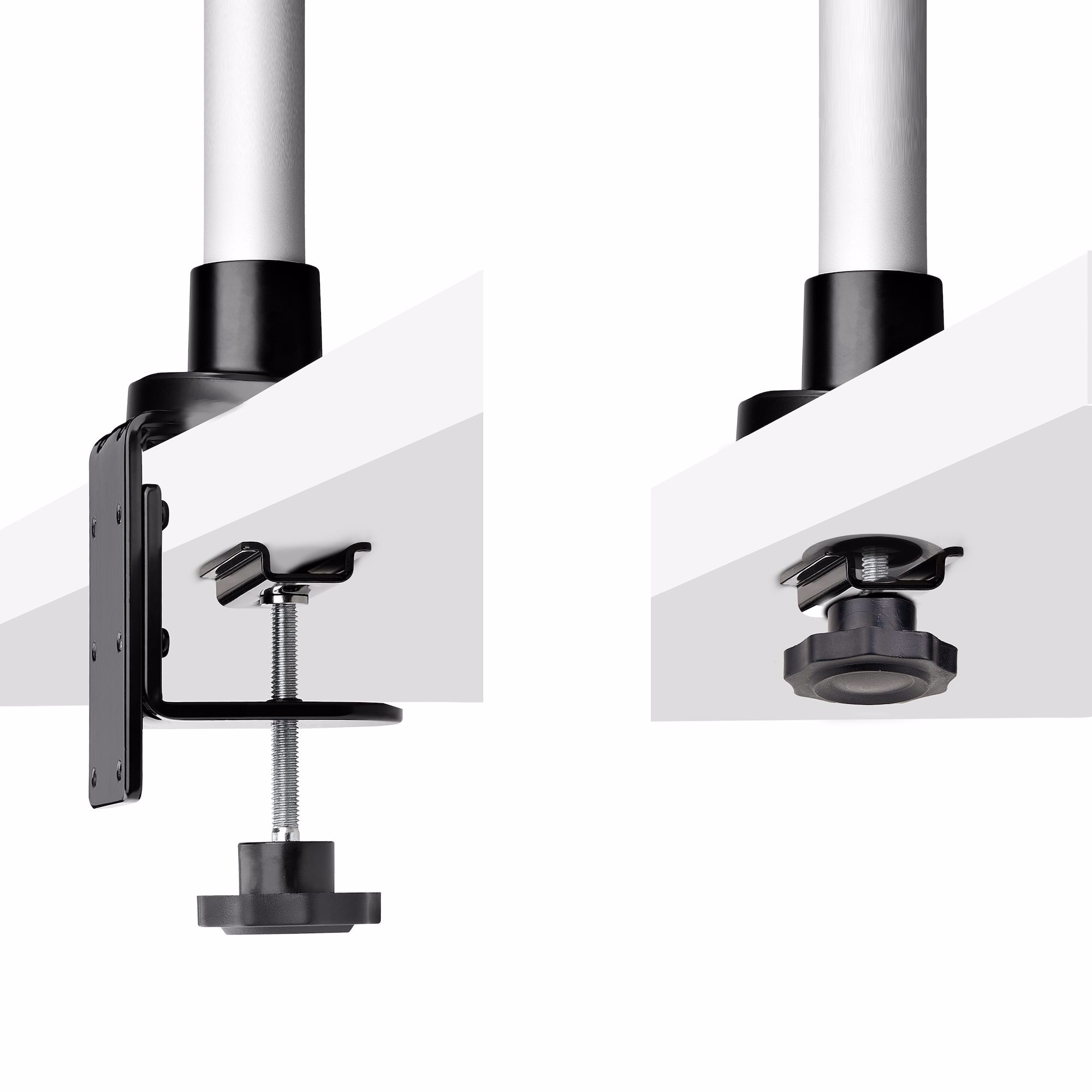 The quick toolless slide and click design makes assembly quick and simple. The pre-assembled desk clamp and pole can be easily secured by hand to the desk, saving total installation time.
