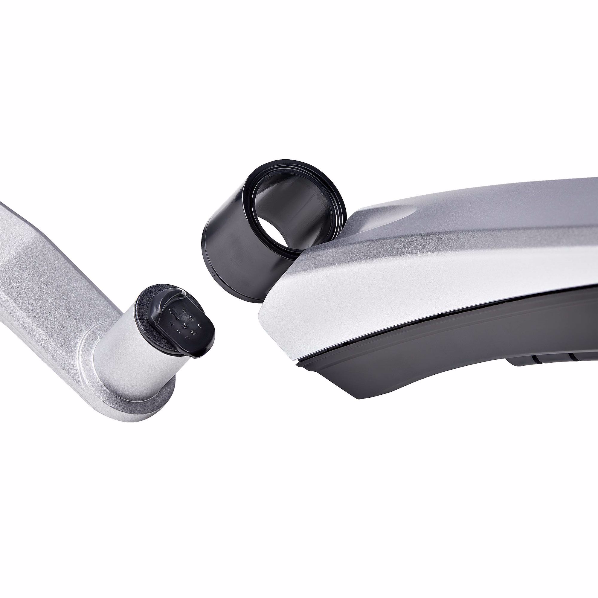 The spring arm enables toolless height adjustment of up to 10.6in (270mm) with effortless one-touch motion. Adjust the height of the arm along the 10.2in (261mm) pole. The arm can extend up to 22.2in (590mm) from the pole.