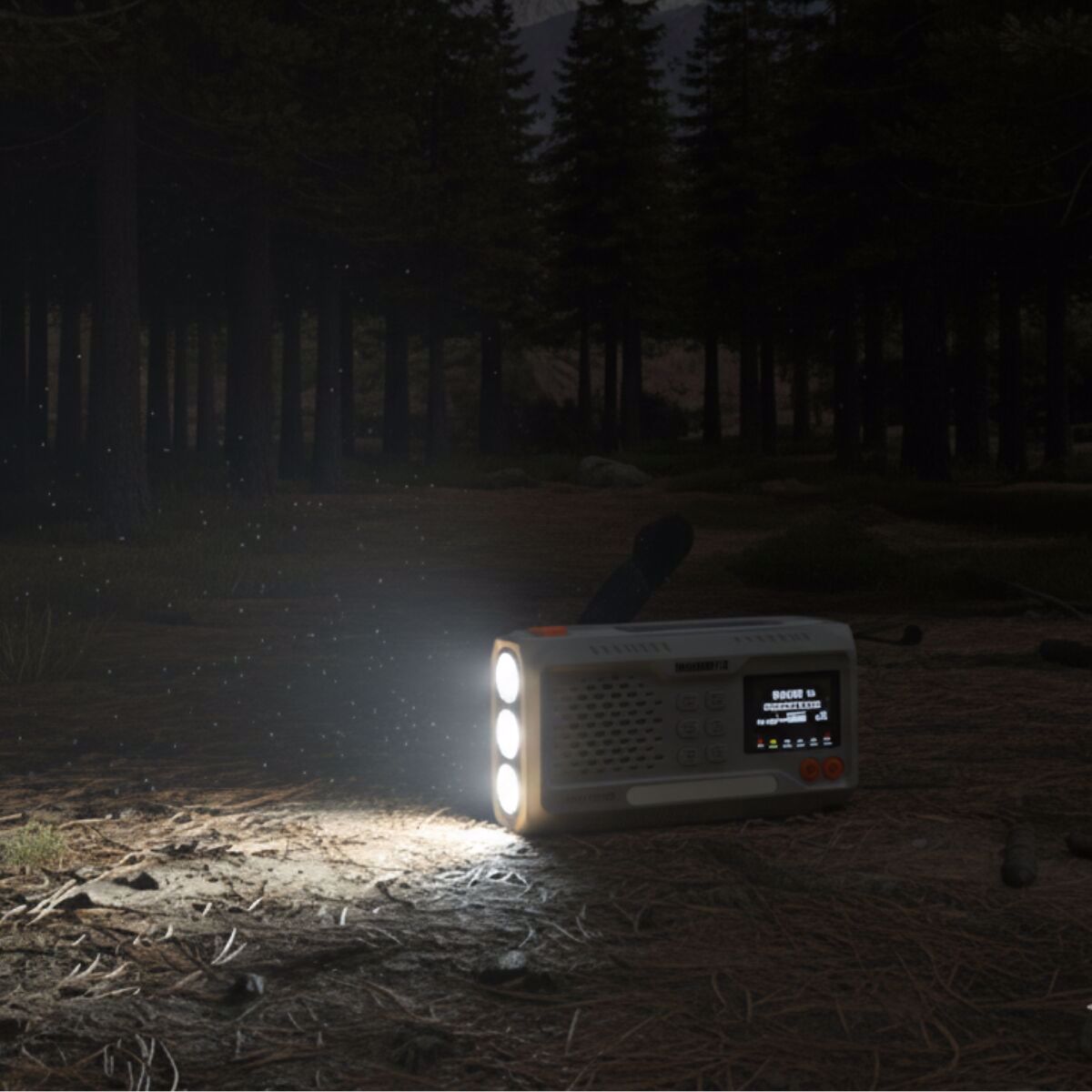 Outdoor and camping: reliable power source, lighting and radio in one.