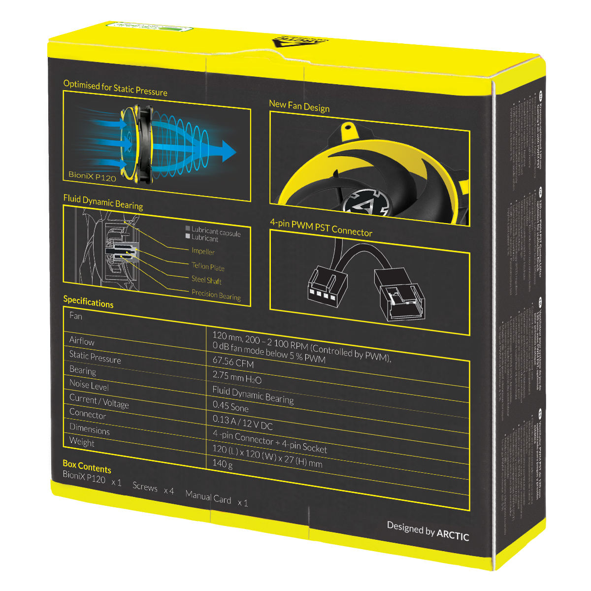 The wide RPM range from 200 to 2100 RPM can be regulated seamlessly and synchronously with other fans thanks to ARCTIC's PWM Sharing Technology (PST).