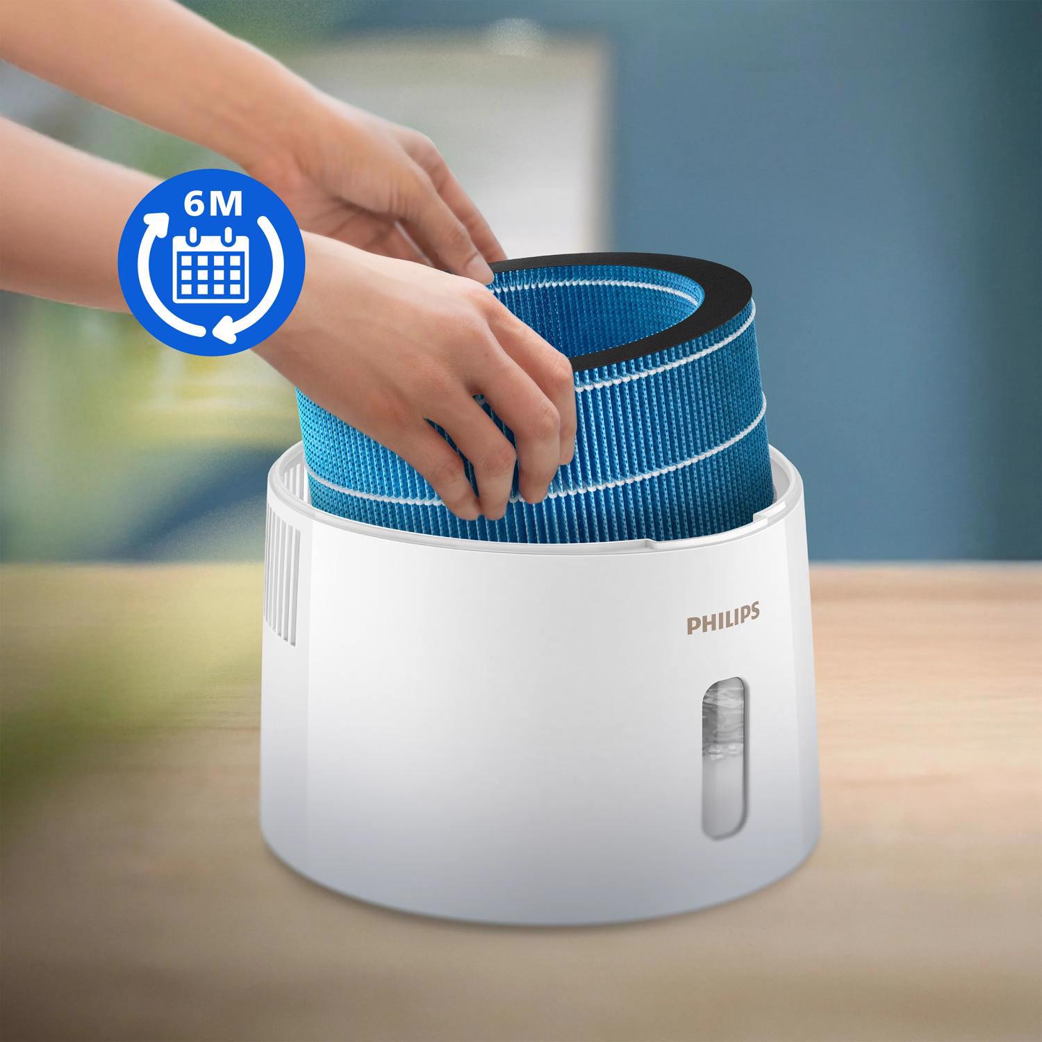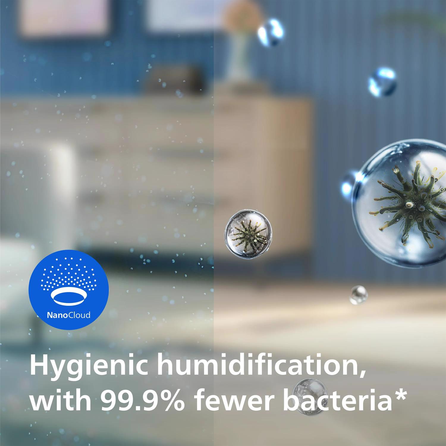 Det originale Philips-befugtningsfilter passer perfekt til dit apparat og sikrer konsekvent høj ydeevne. Den bruger NanoCloud-teknologi til at frigive usynlig tåge og befugte luften med op til 99 % mindre spredning af bakterier (1)