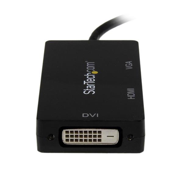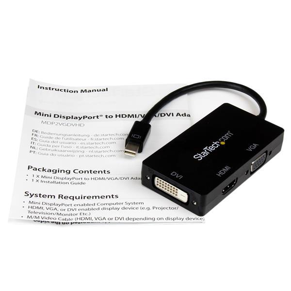 - Ensure compatibility with virtually any display with three-in-one adapter converting Mini DisplayPort to VGA, HDMI, or DVI