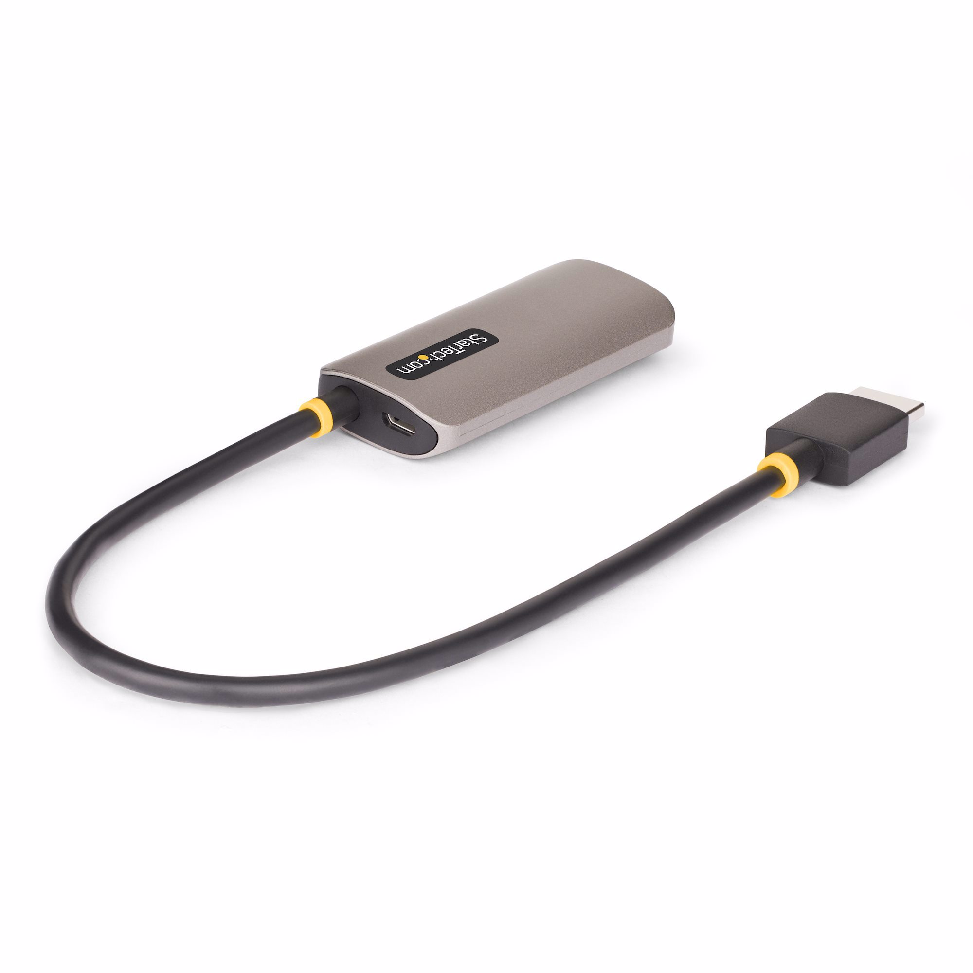 This HDMI 2.1 to DisplayPort 1.4 adapter connects an 8K 60Hz HDMI video source, such as a laptop or desktop, to a DisplayPort monitor.