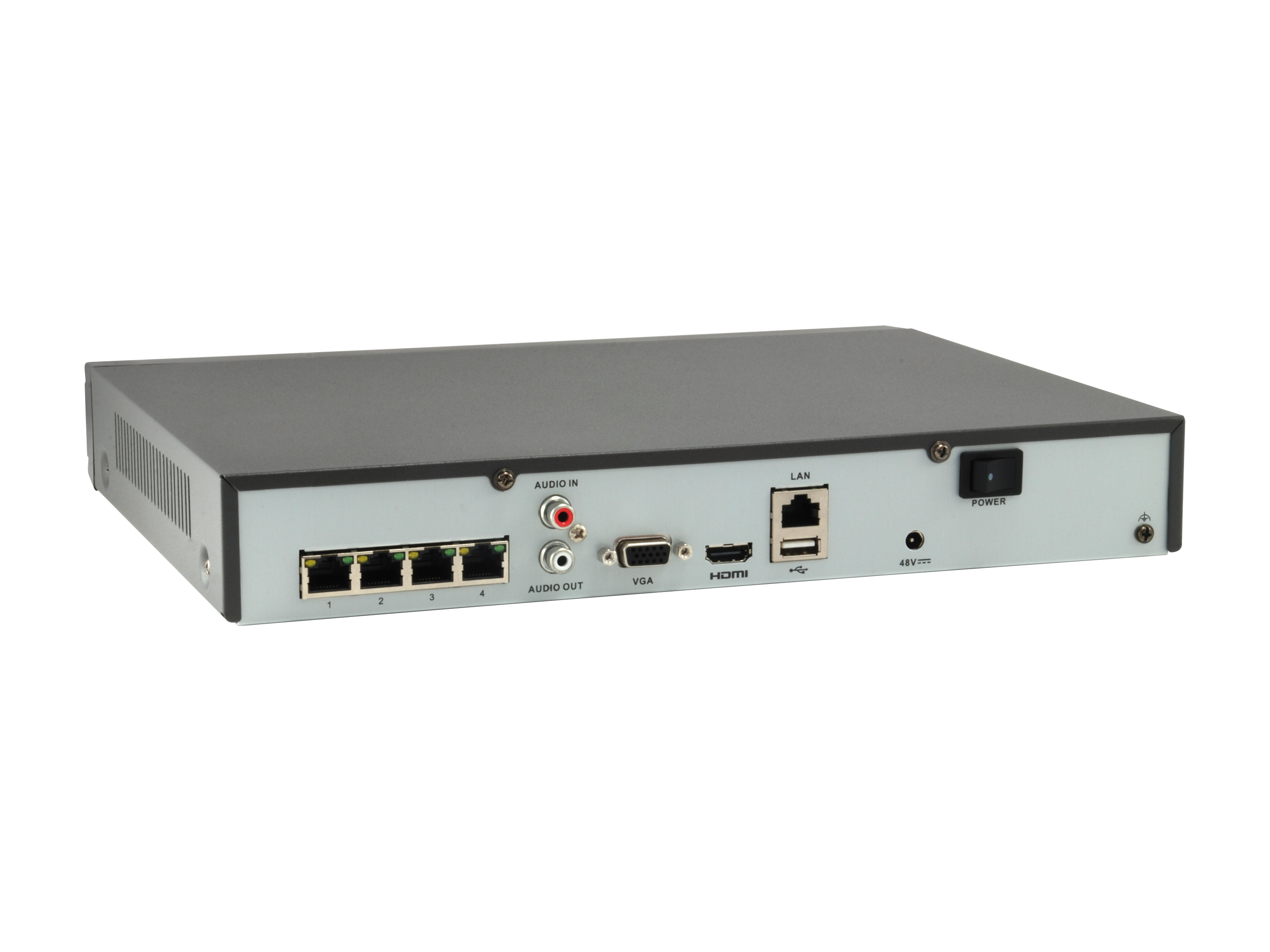 An integrated 4-port 802.3at PoE switch enables the NVR to run both power and data on the one cable to power up connected PoE cameras.